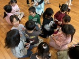 会のあとは、フォークダンスや宝探しゲーム、じゃんけん列車を楽しみみんな一緒に給食を食べました😊